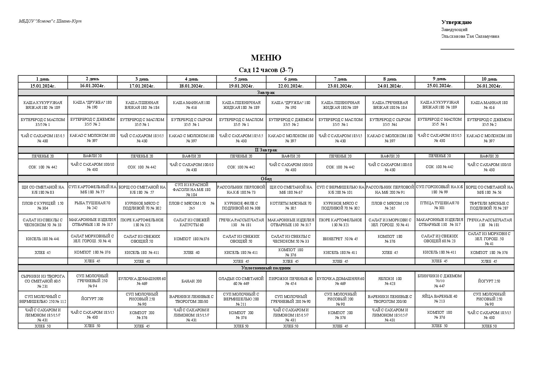 Меню ежедневного питания